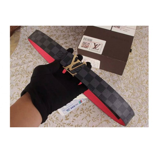 Louis Vuitton Damier Graphite Canvas Belts With Gold Buckle Red