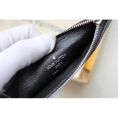 The Coin Card Holder in Damier Graphite canvas is the ideal solution to keep payment essentials in one safe place. Its neat, slim-line design features credit card slots, a zipped coin pocket and a compartment for banknotes.The black leather lining coordinates stylishly with the black and gray canvas.