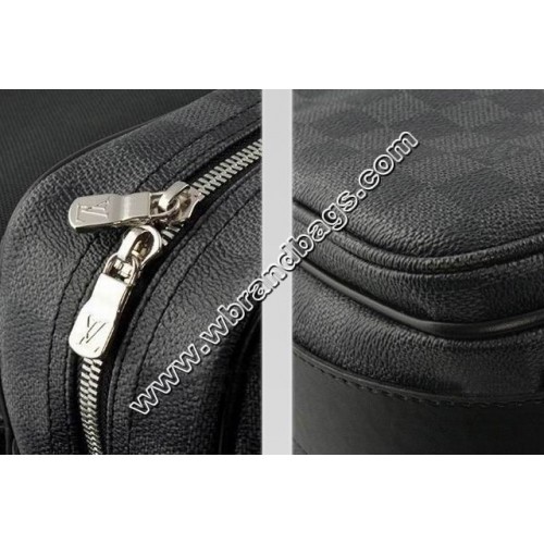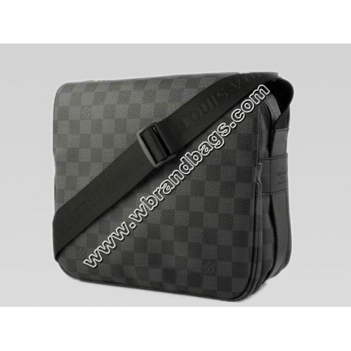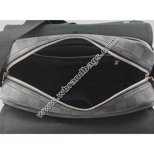 Louis Vuitton combines the urban versatility of a messenger bag with the refined appeal of the Damier Graphite canvas. The large zippered compartment is framed by two smaller outside pockets whose extended flaps snap over the zipper at the top, creating a clean silhouette and added safety