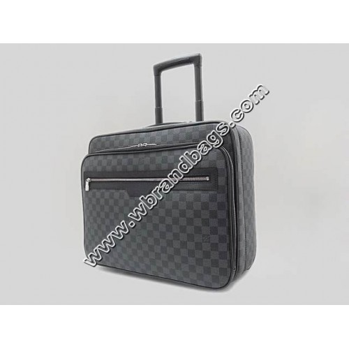 This cabin size Pilot case comes in Damier Graphite canvas. It has a practical, three level telescopic handle with lock-it button and a smart removable leather ID tag.
