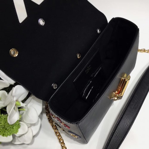 Louis Vuitton Epi Denim Leather With Hand-beaded Motifs Shoulder Bag M54217 Black 2017