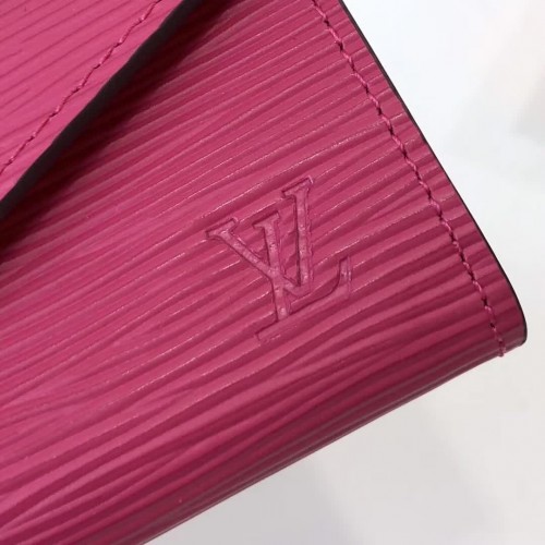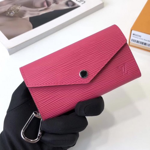 - 1 gusseted compartment- 1 inside flat pocket- 1 key hook- Press stud closure- Epi cowhide leather- Grained cowhide leather lining- Shiny silver colour metallic pieces