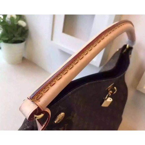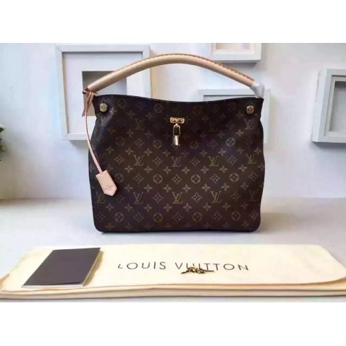 LOUIS VUITTON GAIA NOIR M41621SKU:GSPJ-002SIZE:36*46*28 CM Coated Monogram canvas and natural cowhide leather handle Colorful calf-leather gussetsGolden color metallic piecesShoulder handle Leather gussets feature German constructionKeybellSecret front pocket with secure padlock closure2 smartphone pockets4 bottom studsNamed for the Greek Mother Goddess, the Gaia is fittingly feminine in spirit. This sophisticated addition to the Monogram line will captivate connoisseurs of exquisite workmanship: notice the finely wrought handles, edge dyeing and leather gussets.