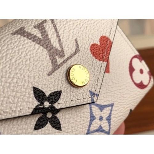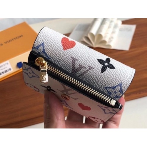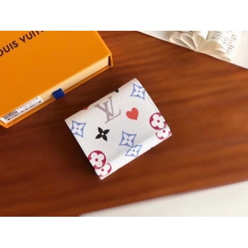 The compact Game On Zoé Wallet comes in Game On canvas, designed by Louis Vuitton Artistic Director Nicolas Ghesquière for the Cruise 2021 Collection. A daring reinterpretation of Monogram canvas, it was inspired by playing cards and features pop colours and heart symbols. The Game On theme encompasses Ready-to-Wear, Shoes, Accessories and Leather Goods.