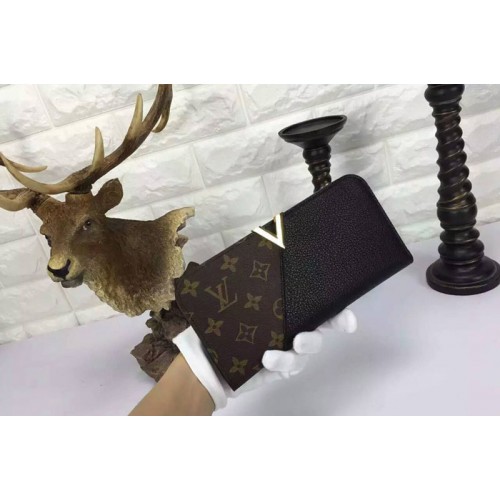 The striking Kimono Wallet combines iconic Monogram canvas and colourful calf leather for a graphic design. The eye-catching golden V signature, inspired by a vintage Louis Vuitton advertising campaign, gives a perfect finish to this feminine wallet.