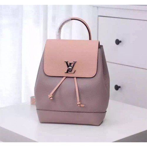 size:28*22*13 cm- Soft calf leather exterior- Soft calf leather trim- Microfiber lining- Silver color metallic pieces- Leather top handle- Adjustable shoulder straps- Leather thread - Inside pocket- LV Twist lock closureCrafted in supple leather and bearing the discreet LV Twist Lock signature, the Lockme Backpack completes the Lockme Family with a fresh new shape. Lightweight and feminine, it is a youthful daily companion for active women: carry it on a single shoulder as a handbag or go for more functionality by wearing it as a backpack.