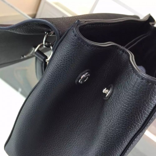 SKU:HTM-0311.0 x 7.9 x 4.3 inches (Length x Height x Width) - Soft calf leather- Smooth calf leather trim- Tone-on-tone twill textile lining- Silver color metallic pieces- Adjustable removable shoulder strap- Keybell- Twist lock closure- 2 press buttons- 2 separate inside compartments- 1 inside open pocket- 2 smartphone pockets