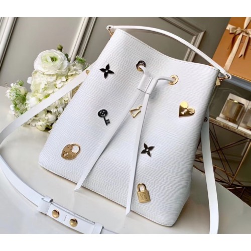 Louis Vuitton Love Lock Epi Leather NeoNoe Bucket Bag M53238 White