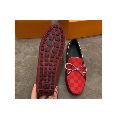 Louis Vuitton LV Arizona Mocassin Shoes Damier Embossed Calf leather Red
