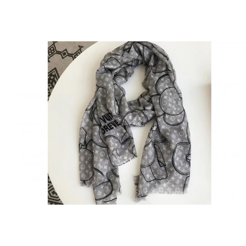 Louis Vuitton LV Gray Vivienne Scarf 100% Cashmere