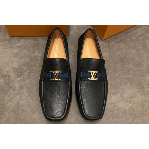Louis Vuitton LV Monte Carlo Moccasin Shoes Black Calf Leather Silver Buckle