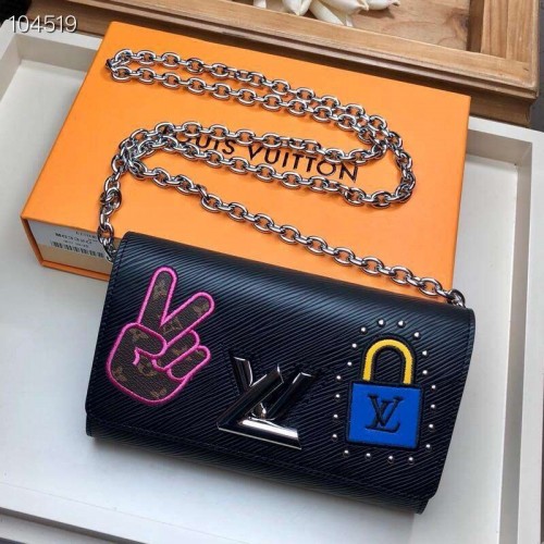 Louis Vuitton LV Stories Epi Leather Twist Chain Wallet M63320 Black 2019