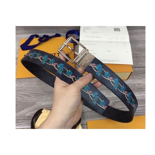 Louis Vuitton M0020U LV Damier Print 40mm Reversible Mens Belts Damier Graphite Canvas Silver Buckle