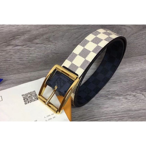 Louis Vuitton M0040Q LV Reverso 40mm Reversible Mens Belt Damier Azur And Damier Graphite Canvas Gold Buckle