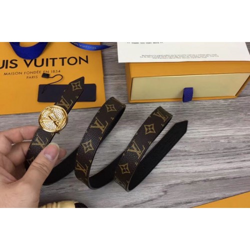 Louis Vuitton M0053U Womens LV Circle 20mm Reversible Belt Monogram Canvas Gold Diamond Buckle