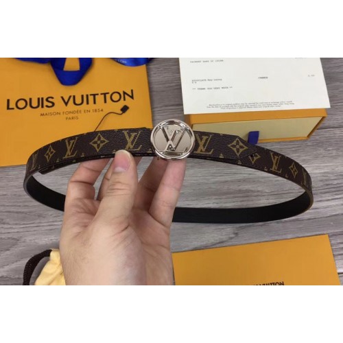 Louis Vuitton M0053U Womens LV Circle 20mm Reversible Belt Monogram Canvas Silver Buckle