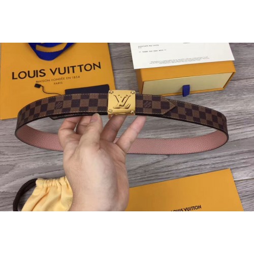 Louis Vuitton M0065U LV Morningram 30mm Reversible Belt Damier Ebene Canvas Gold Buckle