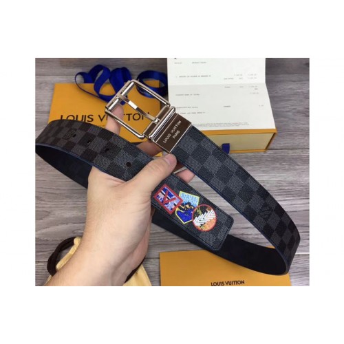 Louis Vuitton M0077U LV Damier Print 40mm Reversible Belt Damier Graphite Canvas Silver Buckle