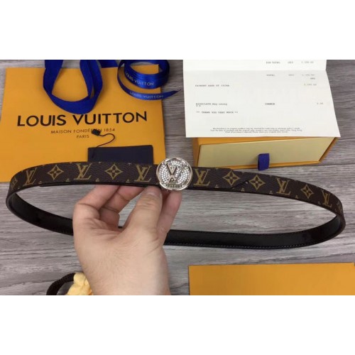 Louis Vuitton M0081U Womens LV Circle 20mm Reversible Belt Monogram Canvas Silver Diamond Buckle