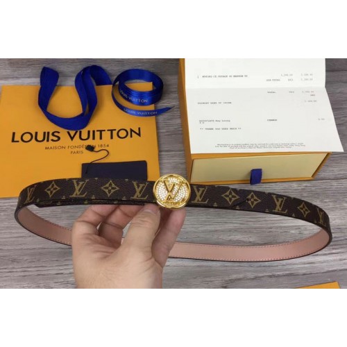 Louis Vuitton M0083U Womens LV Circle 20mm Reversible Belt Monogram Canvas Gold Diamond Buckle