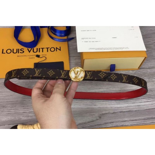 Louis Vuitton M0084U Womens LV Circle 20mm Reversible Belt Monogram Canvas Gold Diamond Buckle