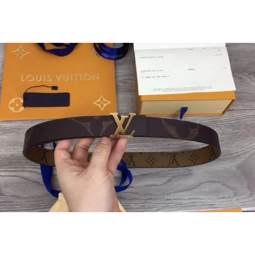 Louis Vuitton M0149U LV Iconic 30mm Reversible Belt Brown Monogram canvas Gold Hardware
