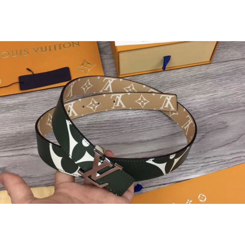 Louis Vuitton M0151U LV Iconic 30mm Reversible Belt Green/Brown Monogram canvas Silver Hardware