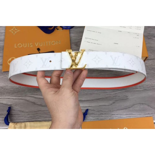 Louis Vuitton M0158V LV Initiales 40mm Reversible Belt White Monogram Canvas and Taiga leather Gold LV Buckle