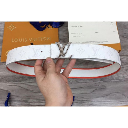 Louis Vuitton M0158V LV Initiales 40mm Reversible Belt White Monogram Canvas and Taiga leather Silver LV Buckle