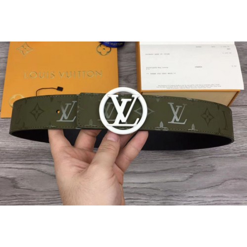 Louis Vuitton M0171 LV Pyramide 40mm Reversible Belt Green Calf Leather White Circle LV Buckle