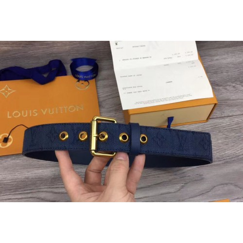 Louis Vuitton M0175T LV Signature 35mm Belt Navy Blue Monogram Denim