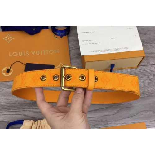 Louis Vuitton M0175T LV Signature 35mm Belt Orange Monogram Denim
