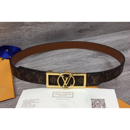 Louis Vuitton M0196U LV Dauphine 25mm Reversible belts Monogram Canvas/Tan Brown Gold/Silver Buckle