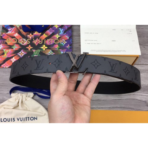 Louis Vuitton M0285V LV Initiales 40mm Reversible belt in Monogram Eclipse Canvas With Black Buckle