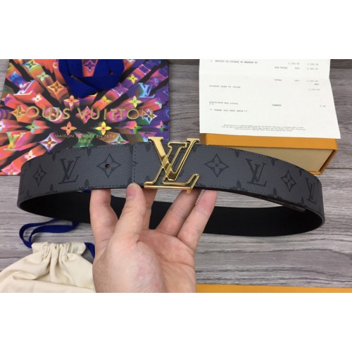 Louis Vuitton M0285V LV Initiales 40mm Reversible belt in Monogram Eclipse Canvas With Gold Buckle