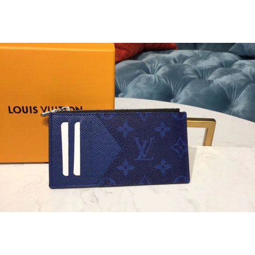 Louis Vuitton M30270 LV Coin Card Holder Monogram canvas and Taiga Leather Blue