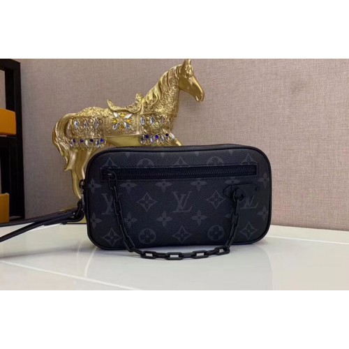 • Louis Vuitton M44458 LV Monogram Eclipse Canvas Clutch Black