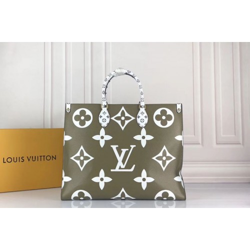 Louis Vuitton M44571 LV Onthego tote bags Monogram coated canvas Khaki Green/White/Beige/Crème Beige