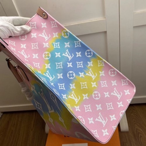 Inspired by the ancient Japanese Shibori technique of knotting and folding the fabric before dyeing it, the LV Escale Collection brings a fresh colorful beach feel to the Onthego GM tote bag for Summer 2020. Large and easy to carry with its shoulder straps or top handles, this large tote is a perfect everyday bag.