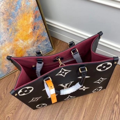 Louis Vuitton M45495 LV OnTheGo MM medium tote bag Black Embossed grained cowhide leather