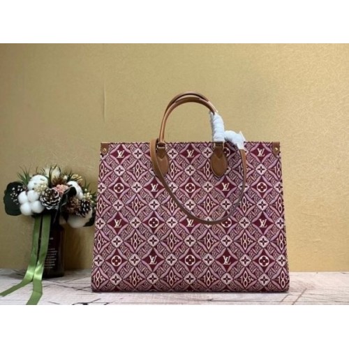 Tags: Louis Vuitton M57185 LV Since 1854 Onthego GM tote bag in Bordeaux Red Jacquard Since 1854 textile, Onthego