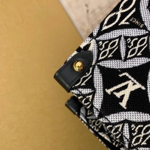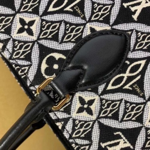 Nicolas Ghesquière brings his new Jacquard Since 1854 textile onto the Onthego GM tote. This woven textile is inspired by vintage wallpaper patterns and features Monogram Flowers and the number 1854, the year of the House’s founding. With two sets of handles, long and short, and a spacious interior, this is a versatile everyday bag.