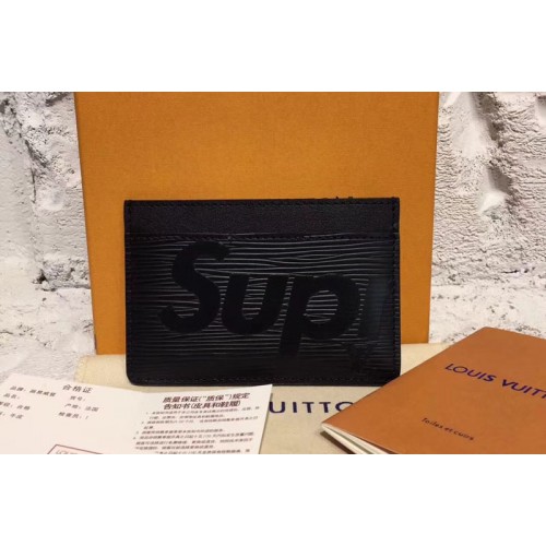 Louis Vuitton M61733 X Supreme Double Card Holder Epi Leather Black