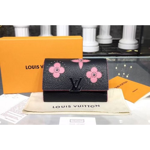 Louis Vuitton M63222 LV Taurillon Leather Capucines Compact Wallet Black