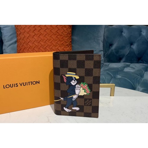 Louis Vuitton M64411 LV Passport Cover Wallet Damier Ebene Canvas With Tom And Jerry
