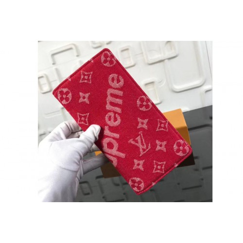 Louis Vuitton M66540 LV Monogram Denim Brazza Wallet Red