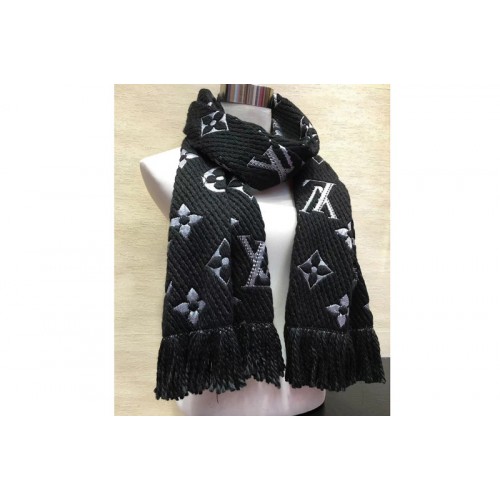 Louis Vuitton M75833 LV Logomania Shine scarf Black Wool and silk