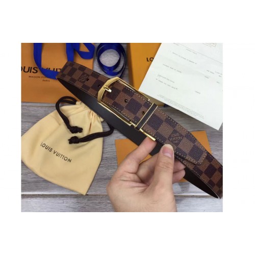Louis Vuitton M9075Q LV Slender 35mm Reversible Mens Belt Damier Ebene Canvas Gold Buckle