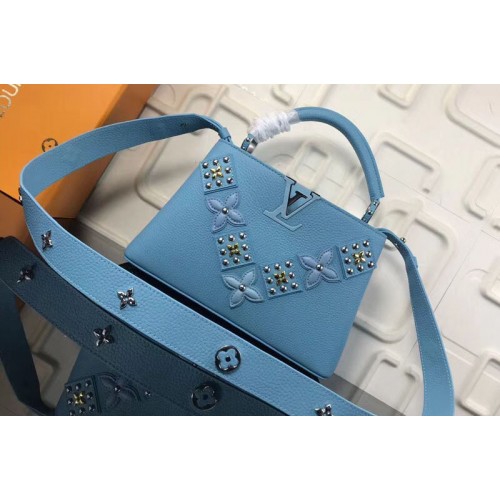 Louis Vuitton M94519 LV Monogram Flowers Taurillon Leather Capucines BB Bags Blue