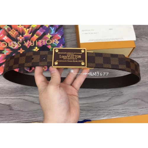 Louis Vuitton M9677 LV Neo Inventeur Reversible 35mm Belts Damier Ebene Canvas Gold Buckle